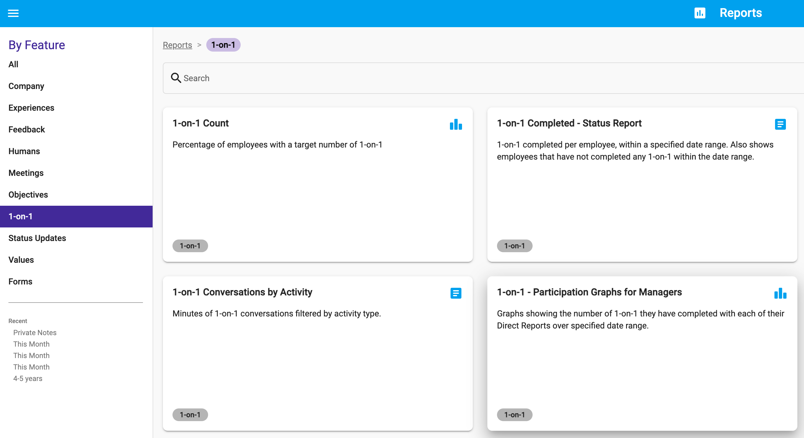 Clicking reports will present you with a list of reports and charts that you have permission to view: